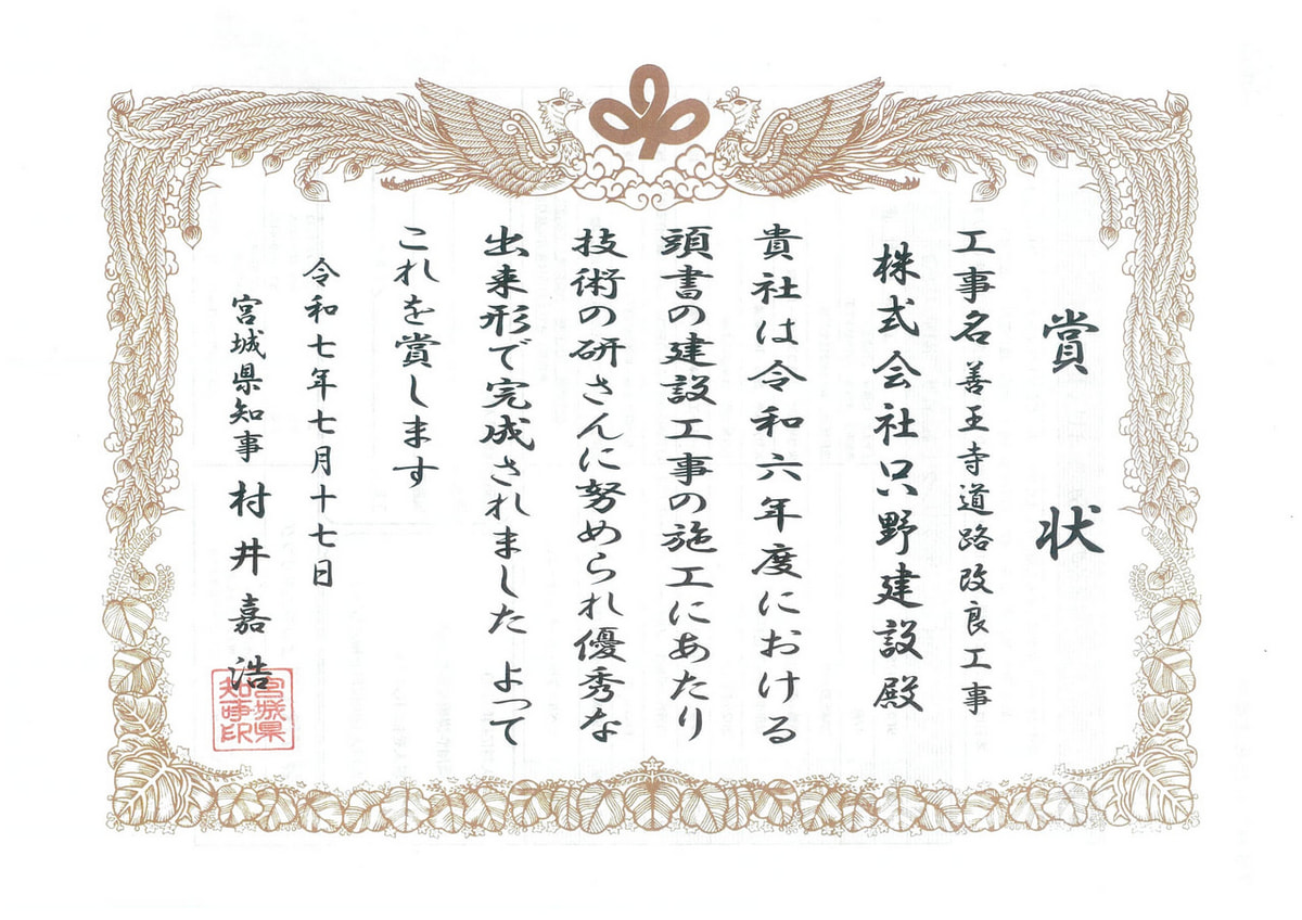 令和7年7月17日に宮城県建設工事表彰が行われ、
